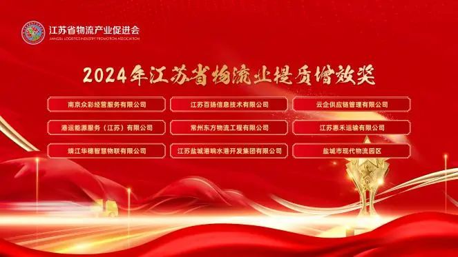 近日,在“十五五”江苏机遇,供应链赋能未来——2024年江苏省物流产业促进会年会上,盐城港保税物流中心与响水港开发集团分别荣获“2024年江苏省物流行业标杆奖”“2024年江苏省物流提质增效奖”。