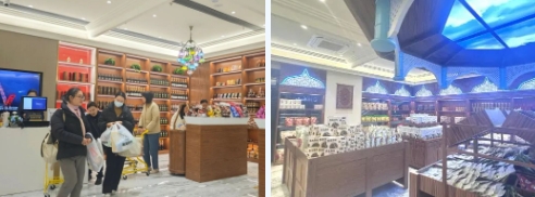 一楼俄罗斯馆,以深厚的东欧风情为灵魂,精心挑选俄罗斯原装进口的蜂蜜、巧克力及伏特加等产品,引领顾客领略俄罗斯的醇厚底蕴与非凡韵味。二楼布置为新疆馆、日韩馆、大洋洲馆及东南亚馆,各具风情,引人入胜。新疆馆,作为“一带一路”理念的生动承载者,汇聚葡萄干、奶片、冻肉等地道的新疆特产,每一口都承载着对西域大地的深情厚谊与诚挚邀请。日韩馆汇聚了顶尖的美容护肤与高端彩妆品牌,成为年轻群体追逐时尚与美丽的圣地;大洋洲馆以其丰富的自然资源为亮点,展示优质奶制品与日常生活用品,传递着大自然的恩赐;东南亚馆则洋溢着热带风情,各类食品与饮品琳琅满目,让顾客仿佛置身于热带的怀抱,感受那份独特的异域魅力。三楼欧洲馆以典雅的欧式风情为核心,涵盖大牌美妆与轻奢箱包等精品,让顾客在品味中沉醉于欧洲的精致生活与艺术氛围。