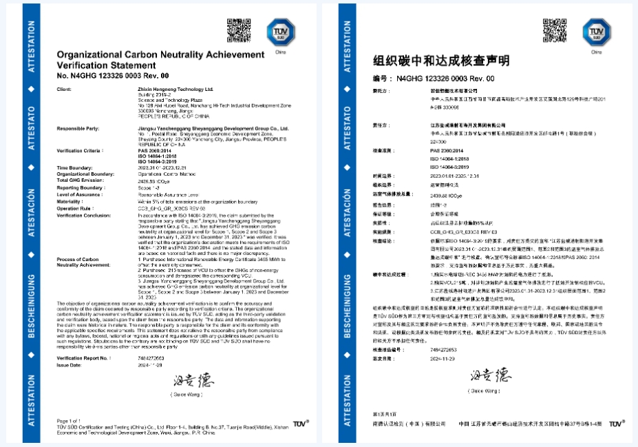 射阳港区积极落实绿色低碳发展战略,按照盐城港集团“五新示范港”发展要求,推动“低零碳”港口建设迈出坚实步伐。11月29日,盐城港射阳港区获得TUV南德意志集团颁发的《组织碳中和达成核查声明》。继2023年盐城港射阳港区获得碳中和承诺审定声明以来,射阳港区在盐城港集团党委的坚强领导下,积极落实国家“双碳”目标战略,全面推动港口绿色低碳发展,奋力为盐城勇当全省发展新质生产力重要阵地“碳路先锋”做出的又一项重要实践。