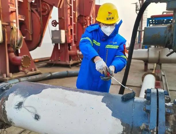 行动期间,工作人员根据作业方案严格落实相关防范措施,采用科学的除锈方法与现场相匹配的漆料,仔细打磨掉码头装卸设备、管道、阀门等设备表面的锈迹与旧漆,进行细致处理,然后均匀涂刷上底漆与面漆。每一道工序都饱含专注与努力,确保涂层平整光滑、附着力强,能为设施提供长效防护。