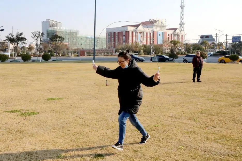 碧玺晴空下,首先进行的是“激流勇进”趣味跳绳跑。赛场上,选手挥动着跳绳,快速奔跑,一心想为团队获得好名次。队友站在各自的“岗位”为比赛的选手欢呼助力。