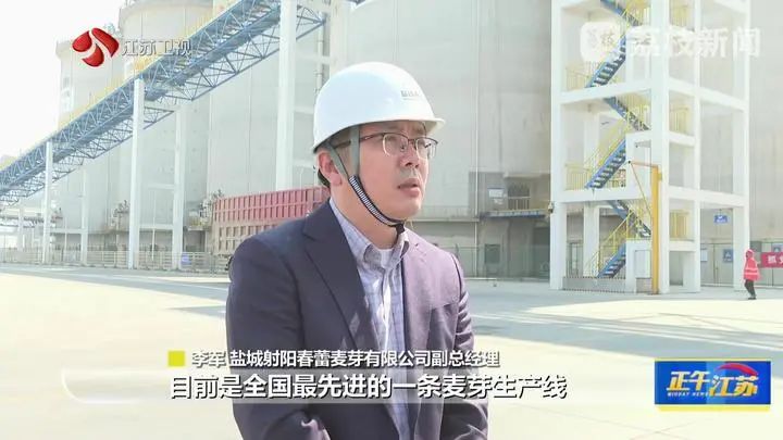 盐城射阳春蕾麦芽有限公司副总经理李军说:“我们的塔式麦芽线目前是全国最先进的一条麦芽生产线,从原料的清选、浸泡、发芽,经过十几道工序,产出优质的麦芽供给我们的客户。今年我们目前出口集装箱有4000多吨,出口主要是南非及东南亚一些国家。”