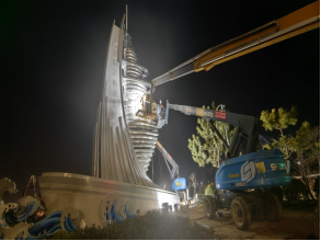 随着最后一组LED灯光调试完成,盐城港响水港区入口处,一座高17米的蓝白色地标建筑正式点亮。这座以“乘风破浪”为设计理念的“精神堡垒”,历经三个月攻坚建设,成为展示港区形象、服务城市交通导航的多功能地标。