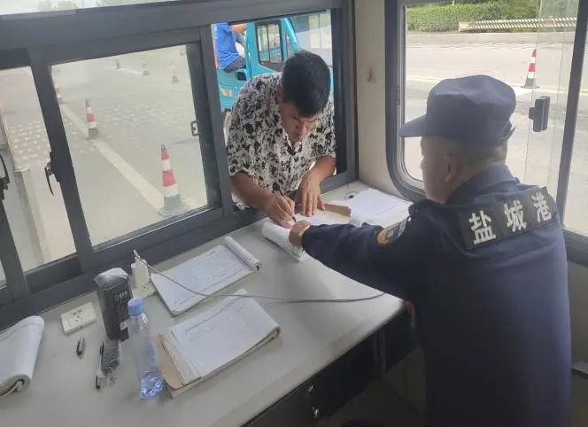 “你好,请将车停一下,登记进港。”门岗保安员身子挺拔,手持醒目的红色停车示意牌,维持港区入口处的进出安全。他们目光坚定,迅速核对驾驶员出示的证件与进港通行证,指尖在登记簿上飞速记录车牌、姓名、事由等信息,同时与职能部门实时核验身份。他们说,只要穿着保安服,我们就必须用严谨细致的工作状态,守牢港口的第一道安全防线。