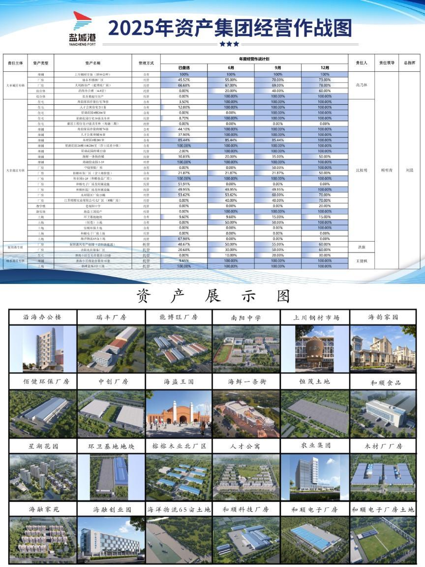 资产集团将深耕资产资源调优,以“提升专业化、构建体系化、推进市场化”为手段,不断提升资产运营能力,为谱写盐城港集团高质量发展新篇章贡献资产力量。