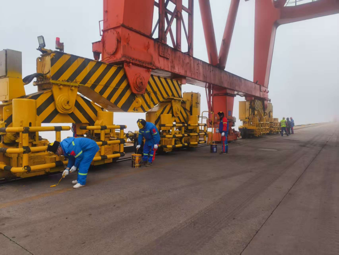 全面开展防腐涂漆工作,大力组织班组人员深入排查起重设备吊具、吊钩、钢丝绳锈蚀情况,分批次进行深度清洁,细致打磨,去除油污杂质,润滑刷漆上色,清理油漆褪色、掉皮、鼓包,开展二次补漆工作,为设备穿上“新衣”,进一步提升设备使用寿命,让港容港貌焕发“新颜值”。