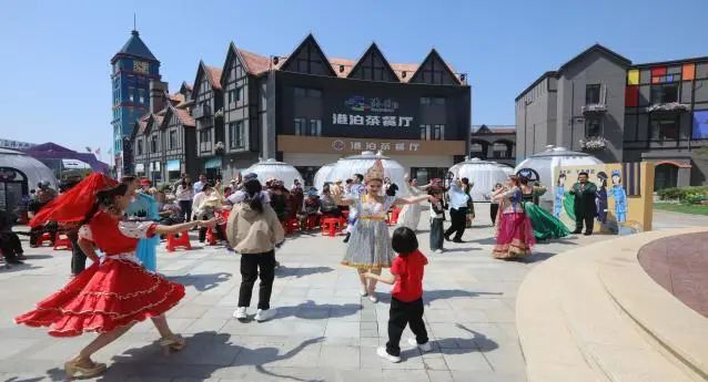 男女群舞《西域风鼓》,让人仿佛置身苍茫西域,舞者身披华服翩然旋转,绚丽的裙摆与港区交相辉映,引得现场观众纷纷举起手机记录这一绝美画面。