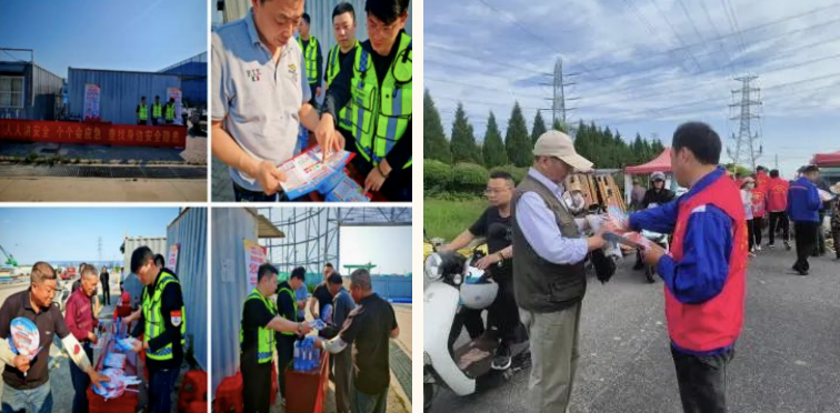 各级公司主要负责人带头开展“安全生产大家谈”“一把手话安全”等专题宣讲活动,深入解读安全生产法律法规、企业主体责任、重大事故隐患判定标准,结合实况把脉安全态势,部署安全重点工作;安全文化如春风化雨,遍及码头前沿、项目工地、船舶甲板,各单位通过悬挂主题横幅、警示海报、电子标语构筑“视觉防线”;微信公众号、工作群组推送法规案例、应急知识,着力打造“指尖课堂”。特色“五进”活动精准延伸触角,农业集团深入田间讲解“夏收夏种”安全要点,射阳港区走进社区发放“安全大礼包”,国际股份公司将危化品安全知识送入家庭,让安全理念深入人心。