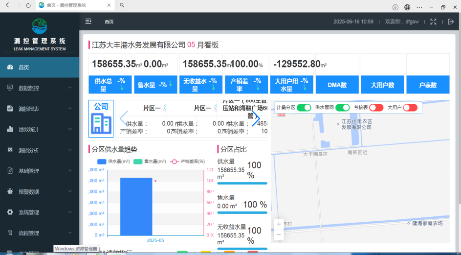 为从源头破解供水管理被动局面,大丰港水务为供水“ 大动脉”装上“智能天眼”:在130公里供水主管道上布设16套压力监测设备、6套流量监测设备,构建漏损监测系统,实时在线监测管网压力、流量,实现压力异常15分钟预警、漏点精准定位。通过智能化手段,推动管理模式从“被动抢修”向“主动预警”转变,用科技赋能筑牢供水安全防线。