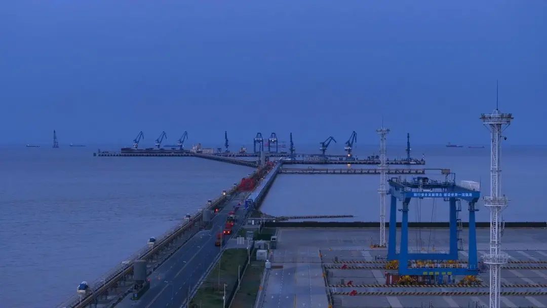 蓝调时刻的美,在于它让工业与浪漫共舞。当夕阳沉入黄海的怀抱,港区的灯塔率先点亮,堆场的集装箱矩阵褪去白昼的灰蓝,渐次染上紫粉的余晖,仿佛莫奈笔下的《干草堆》有了现代工业版;而泊位旁停靠的巨轮,甲板灯火如珠链,与天际残留的钴蓝云霞交织,构成一幅“海上生明月,天涯共此时”的恢宏长卷。