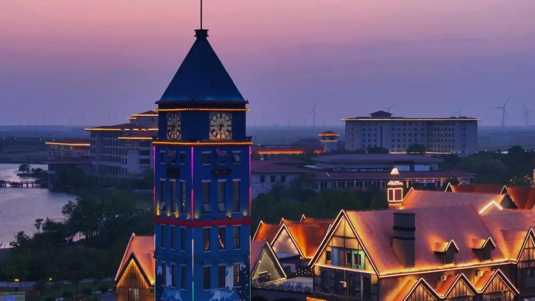 此刻的盐城港,是多重时空的折叠——码头上,晚班工人与夜航货轮完成交接,起重机悬臂划过天际线的弧线,像一支以天空为谱表的银色指挥棒;文旅业态中,港泊餐厅里正热闹非凡,食客们举杯畅饮时,杯沿映照着远处集装箱船那如移动灯火城堡般的璀璨光芒。
