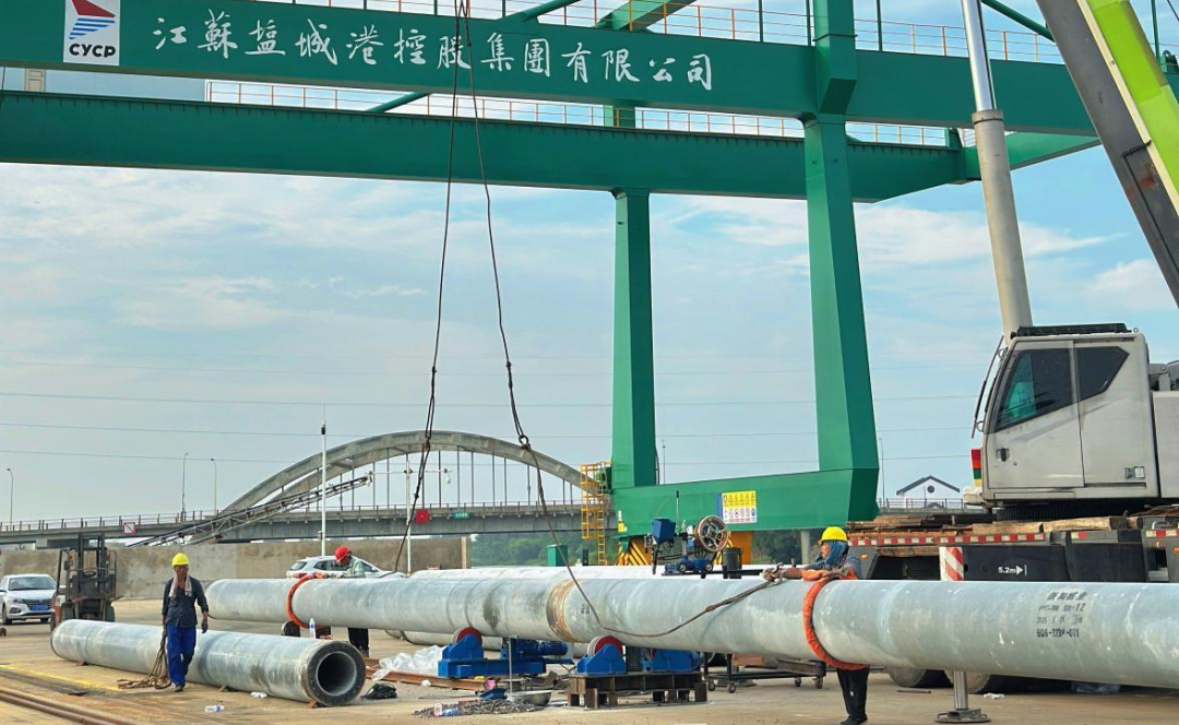 面对这一关键运输任务,建湖港以 “优质服务 + 高效作业” 双轮驱动:提前对接货主与运输船舶,制定24小时轮班作业方案;安排专业技术人员全程盯守管桩拼接环节,确保每一段管桩精准对接、安全稳固;作业现场实时协调装卸设备与人员动线,最大限度减少衔接等待时间。凭借这份 “连轴转” 的担当与 “零差错” 的专业,港区以全天候服务为项目顺利推进筑牢了物流保障线。
