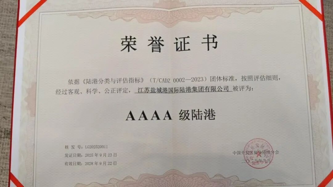 荣誉既是鼓励,更是前进的动力。下一步,陆港集团将以此次获评“4A级多式联运企业”为契机,积极融入长三角一体化发展格局,持续加密与国内主要物流枢纽城市的通道连接,优化物流线路布局,加快构建覆盖更广、效率更高的“公铁水”多式联运网络,强化区域集疏运和枢纽转换功能,全面提升多式联运综合服务能力与核心竞争力,为盐城港集团实现“十四五”圆满收官、迈进“十五五”新征程贡献更多陆港力量。
