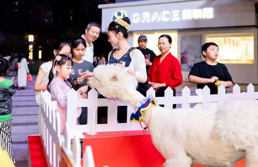 本次活动中,温顺的羊驼与憨厚的奶牛再度亮相宝龙、射阳体验馆,成为吸引家庭客流的“流量密码”。孩子们在家长的陪伴下,与这些可爱的动物朋友亲密接触、拍照打卡,现场欢声笑语不断。熟悉的动物互动环节不仅成功营造了欢乐祥和的节日氛围,更显著增强了线下活动的吸引力与参与感,让购物体验超越了简单的买卖,升级为一场温馨的亲子嘉年华。