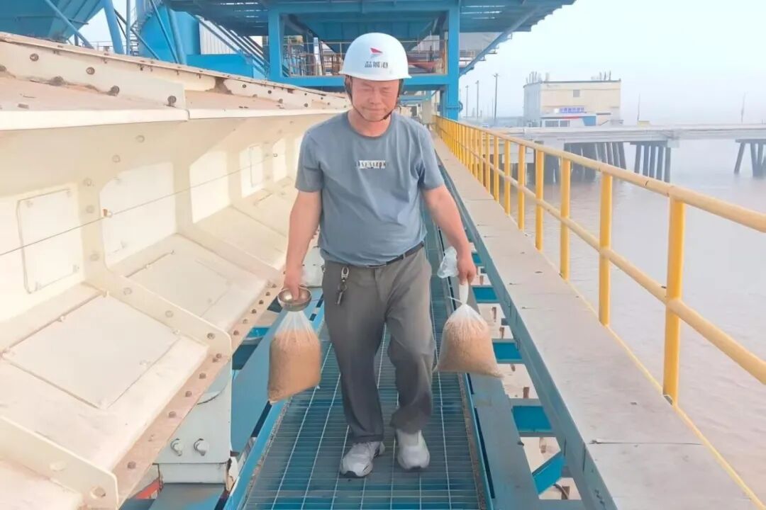 70后的顾西锦,日常主要全力配合货代外勤推进工作,承担关键辅助职责。他像一块稳稳矗立的老基石,话不多却句句扎实,用极致的细致与可靠,成为外勤团队不可或缺的“坚强后盾”,将“务实精进”的精神融入每一次业务办理中。盛夏时节,货场地表温度突破40℃,热浪裹挟着大豆的豆腥味扑面而来,粗糙的豆粒在满是汗水的掌心滚动,他的后背早已湿透得能拧出水来。即便汗水流进眼里,带来阵阵刺痛,他也只是飞快地抹一把,生怕耽误后续检测时效。他常说:“咱们的工作容不得半点马虎,就是要把每一件小事做细、做扎实,精进就是把每一次遇到的问题,都变成提升自己、改进工作的机会。”正是这份细致与坚持,让团队协作更加顺畅高效,也让“务实”的基因在工作中代代传递。