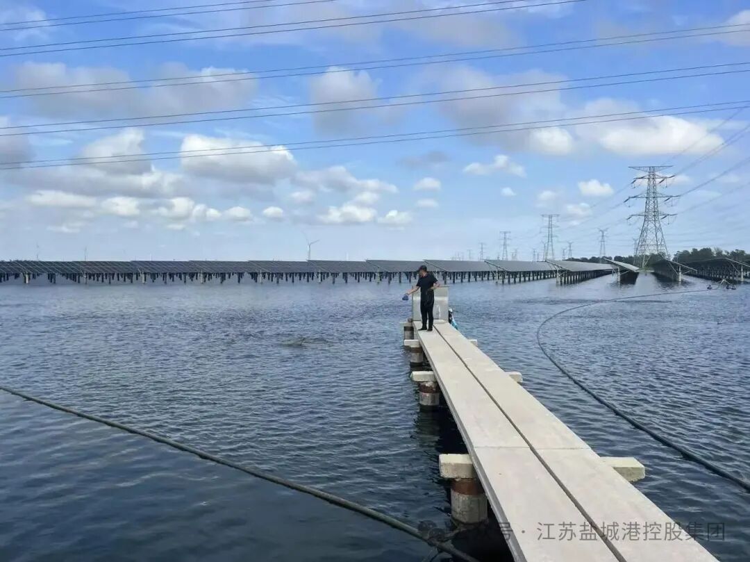 在盐农华丰7956亩的水域上,光伏板整齐排列如蓝色海洋,水下鱼虾游弋正欢。这个由盐城港集团与悦达投资联合打造的项目,以“一地两用、渔光互补”模式实现“上发电、下养鱼”的生态奇迹。自2024年10月15日并网运行以来,年均发电量达4.43亿千瓦时,每年可节约标煤13.34万吨,减少二氧化碳排放36.65万吨,提升养殖密度20%。