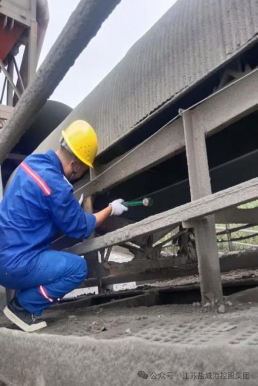 散货码头的皮带线,堪称港区物流动脉。一次作业中,转运关键节点的皮带机滚筒突发卡死,导致整条熟料运输线面临停摆。“动脉”阻塞,分秒都是损失。“洋阳”班组火速响应,化身“急诊医生”。拆解、清理、更换轴承——他们在粉尘弥漫和噪声环绕的环境中展开紧急维修。汗水浸透工装,油污沾满双手,但没有一个人退缩。通过紧密的轮班协作,原本需要一天的维修任务,仅用四小时就圆满完成,让这条“钢铁巨龙”再次奔腾起来。
