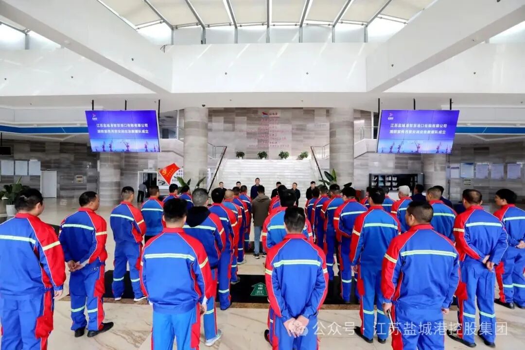 随着2025年“消防宣传月”活动全面启动,盐城港智慧港口公司紧扣“全民消防、生命至上——安全用火用电”主题,组织开展了形式多样、注重实效的消防安全系列活动。作为本次活动的重头戏,安澜应急救援队的成立备受瞩目。救援队由公司党员、退役军人及相关管理人员等56人组成,11月6日,智慧港口公司负责人与港区消防中队队长共同为安澜应急救援队授旗,标志着这支崭新的应急救援力量正式投入运行。