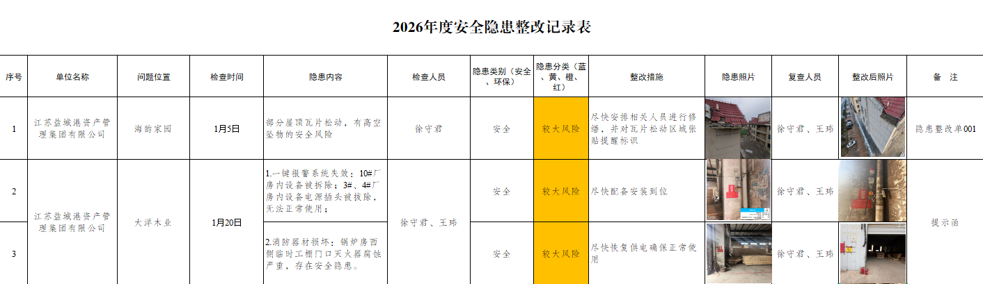 聚焦年终关键时段,以“九个一件事”治理为抓手(消防安全、特种设备、厂中厂管理等),开展全覆盖、拉网式安全大检查。针对重点环节和领域,建立“排查—整改—验收—销号”闭环机制,实行“清单式管理、限期整改、验收销号”。通过台账动态跟踪,推动隐患整改“清仓见底、动态清零”,切实提升本质安全水平与风险防控能力。