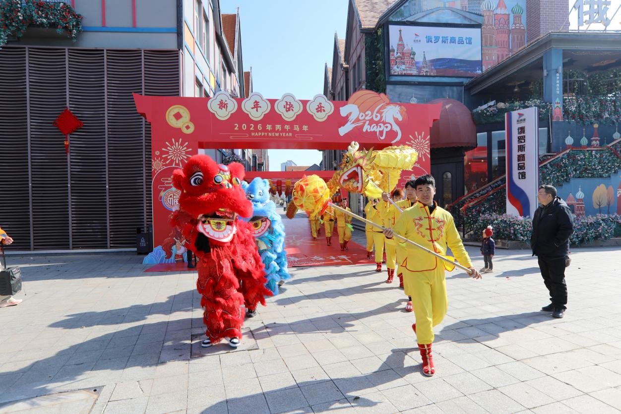 走进莎士比亚小镇,锣鼓喧天,金龙腾跃,舞龙舞狮的队伍穿梭在街巷之中,为游人送上新春的第一份祝福。这一传统民俗表演,不仅保留了节日的浓厚氛围,更在游园会中融入了演艺、国风、科技等多种现代元素,让“传统”与“潮玩”碰撞出别样的火花,呈现出兼具传统年味与时代活力的“港泊年味场景”。