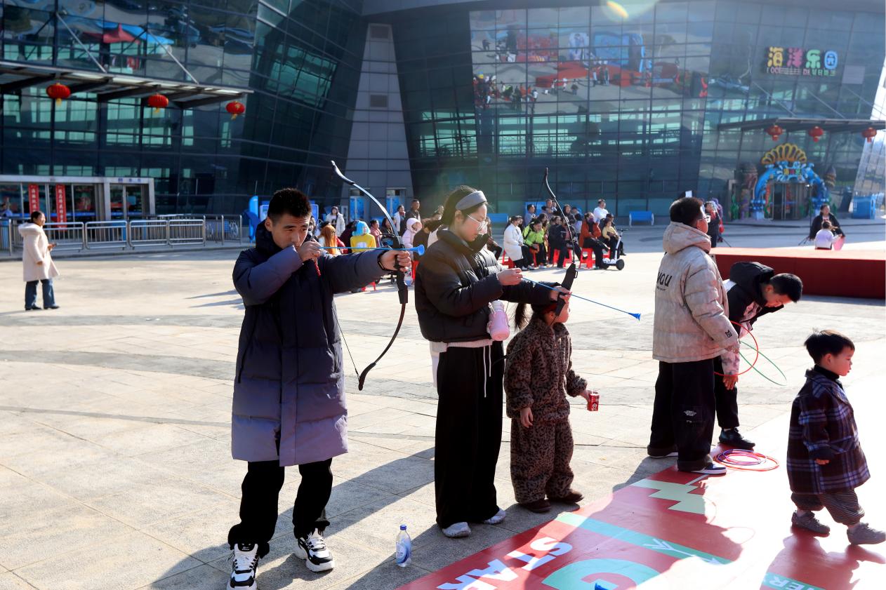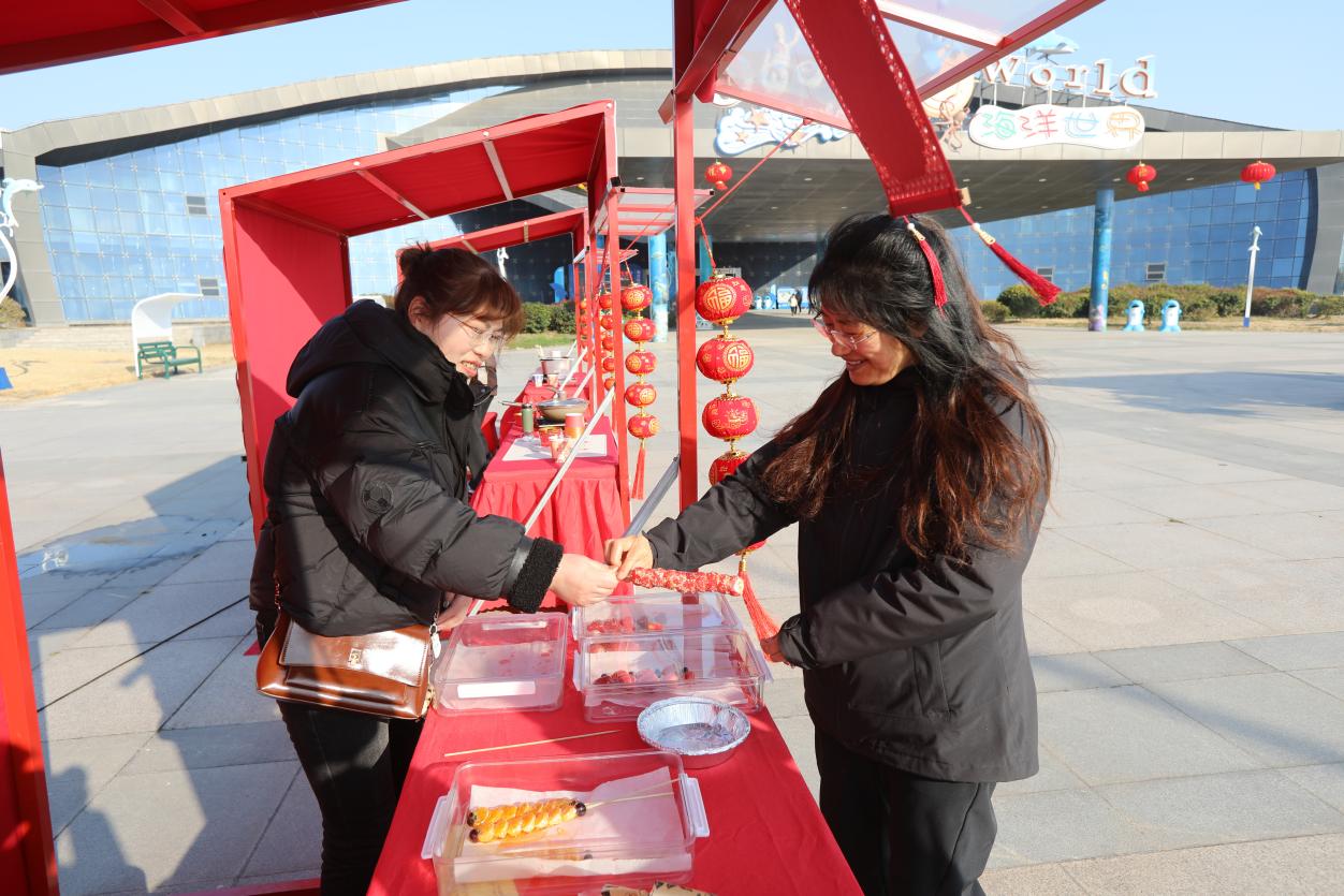非遗市集上,传统与现代交织碰撞。这里不仅有精美的非遗手工艺品展示,更有充满趣味性的传统游戏。套圈、跳球、射箭等游戏区域前围满了游客,大家跃跃欲试,想要一展身手,在游戏中感受传统民俗的乐趣。玩累了,再来一串酸甜可口的糖葫芦,那熟悉的味道瞬间唤起了儿时的记忆,为这趟游玩增添了几分甜蜜。