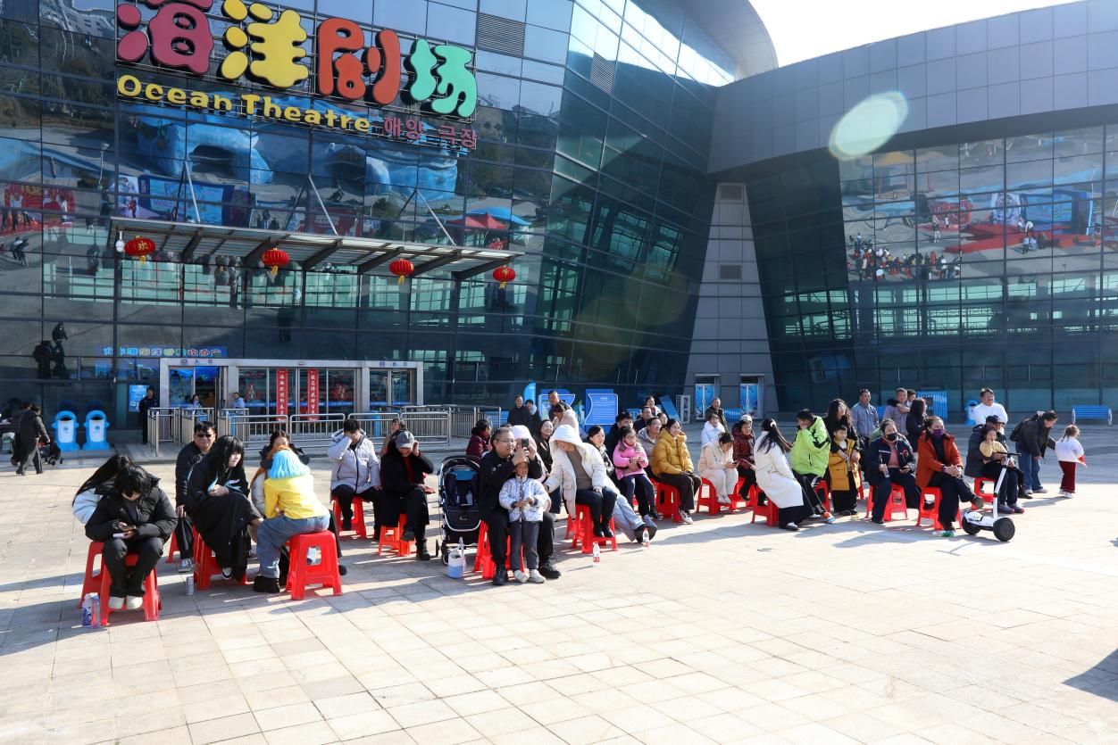 特色打卡场景前,游客们纷纷驻足,用镜头记录下这份独特的年味记忆。海豚表演区更是人气爆棚,聪明可爱的海豚在驯兽师的指挥下,完成了一系列高难度动作,引得观众阵阵掌声与欢呼。