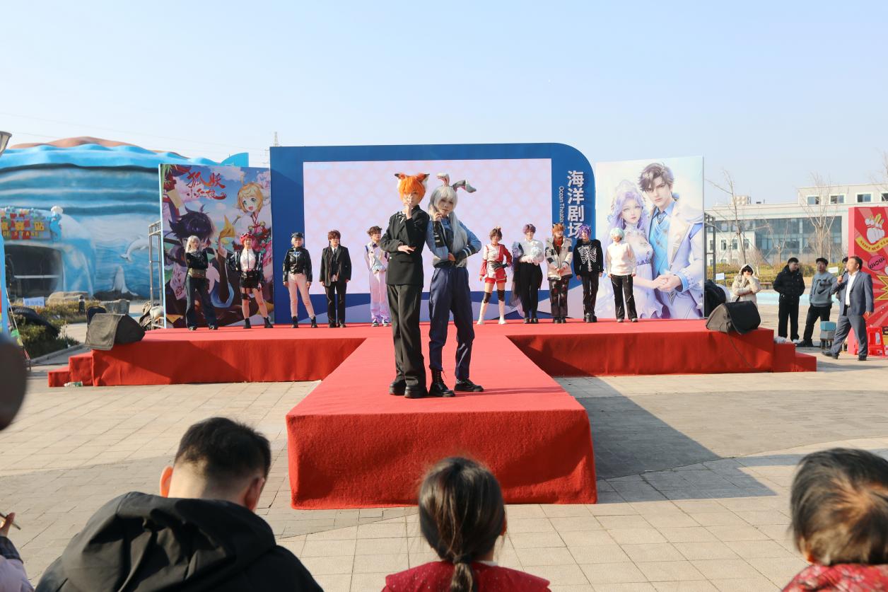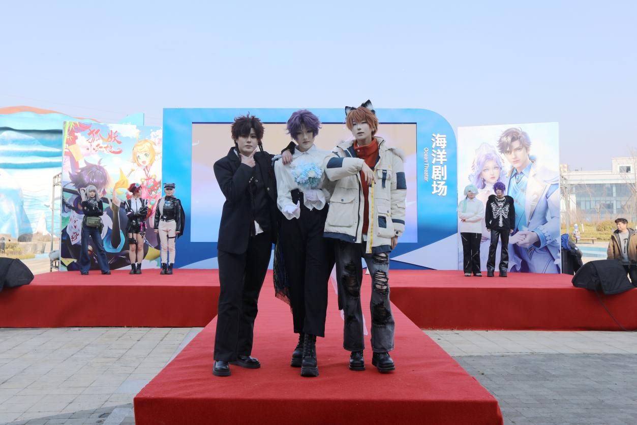 步入国风漫展区,仿佛穿越至动漫世界。Cosplay爱好者们身着华服,扮演着各自喜爱的角色,成为大丰港海洋世界一道亮丽的风景线。