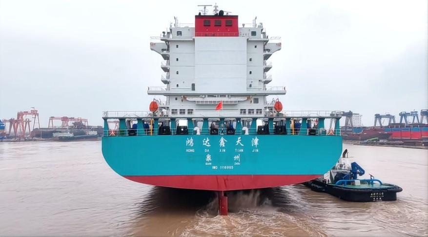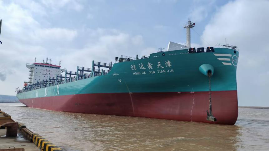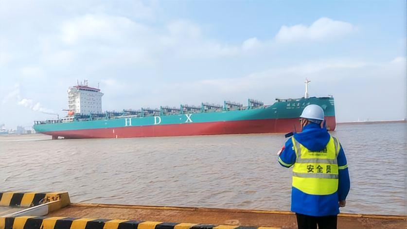 “鸿达鑫天津”轮为3600TEU集装箱船,采用绿色造船标准与先进工艺,适配无限航区运营,具备装载量大、油耗低、稳性高等特点,是苏北地区建造交付的大型外贸集装箱船之一。作为盐城地区企业自建的首艘出口整船,业务流程新、协调环节多。为保障该船舶顺利出口,响水港区提前制定专项靠泊方案,优化泊位调度与现场服务,开通专属作业绿色通道;盐城海关则全程跟进,主动对接企业需求,围绕通关流程、监管衔接等关键环节精准发力,实现靠泊、查验、备案、出口全流程闭环管理。多部门高效联动,既保障船舶如期出境,也为本地船企拓展国际市场打下坚实基础。