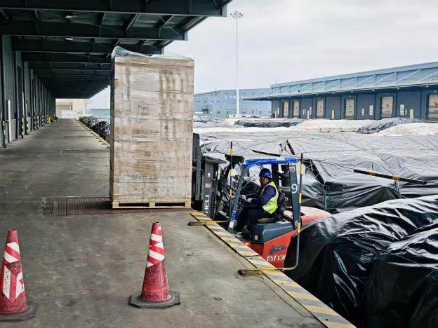 为保障此次大规模组件顺利入区,保税物流中心量身定制“一企一策”服务方案。提前与光伏企业、海关等多方联动,精准对接货物规格、运输计划等关键信息,预判存储需求峰值;同步启动仓库资源优化调整,全面梳理现有仓储布局,对库区现有货物实施分批次移库腾库,协调专用临时周转区域集中分流存放,全力释放仓储空间,确保专用月台式仓库及预留拓展区域完全符合光伏组件规模化存储需求。在此基础上,中心采用“分送集报”通关模式,允许车辆错峰到达,搭配优化后的专属仓储资源,实现车辆“即到即卸即出区”的无感通行体验。针对光伏组件尺寸大、易磨损的特性,中心进一步优化装卸流程与堆存间距,全程保障货物安全无损伤。