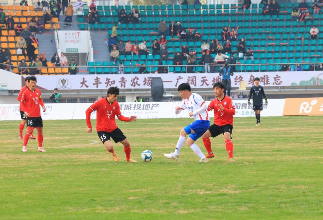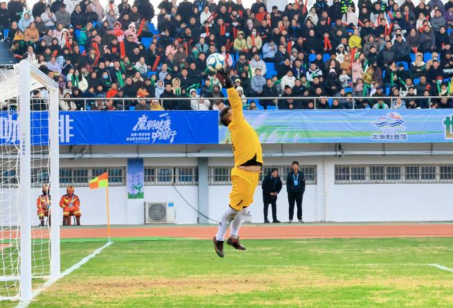 闪耀的绿茵场上,身着明黄色战袍的陈龙泉在场上格外引人注目,经此一役已然成为赛事“网红”。这位1988年出生的“大叔”,200斤的壮实身板,与对手阵中众多00后小将形成鲜明对比。用一次次奋不顾身的扑救与永不言弃的奔跑,诠释了盐城港人的坚韧底色。面对对手一波又一波的猛攻,他始终屹立在球门前,扑挡、倒地、呐喊、鼓劲。体力不断透支,比分逐渐拉大,但他从未动摇过哪怕一秒,用执着守住“最后一道防线”,也用行动点燃了队友的斗志。