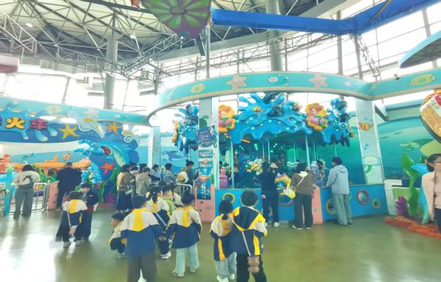 在海洋儿童乐园里,孩子们彻底放飞了天性。海盗船上,有小朋友兴奋地喊道:“爸爸,我比你高啦!”,小手一边紧紧抓着把手,一边咯咯地笑着。旋转木马、小火车、过山车、碰碰车、积木房……家长们或在一旁微笑守候,或参与其中,亲子间的默契与温情,在这一方天地里悄然生长。