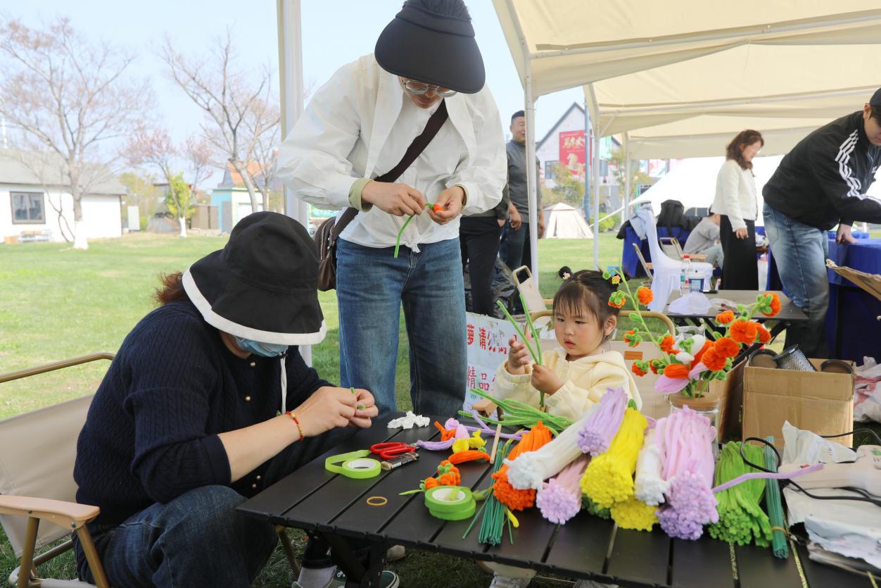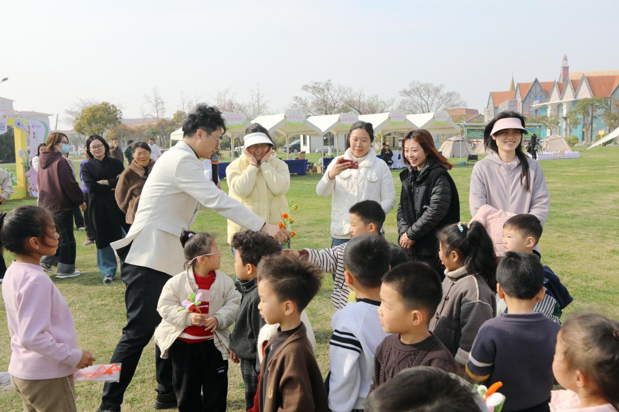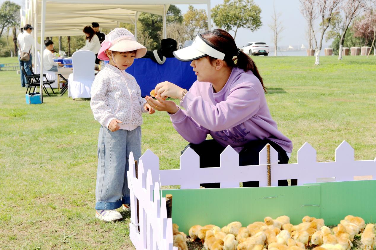 在“萌宠乐园”互动区,温顺的小鸡、小兔成为孩子们的新朋友,小朋友们体验趣味喂养,与萌宠亲密合影。一旁的手工绿植小盆景制作区,亲子共同动手栽种绿植、搭配装饰,将一抹春意带回家。非遗绒花编织区则吸引了不少家庭驻足,在专人教学下,一根根丝线化作精美的春日绒花饰品,让孩子们在动手过程中感受传统手工艺的魅力。