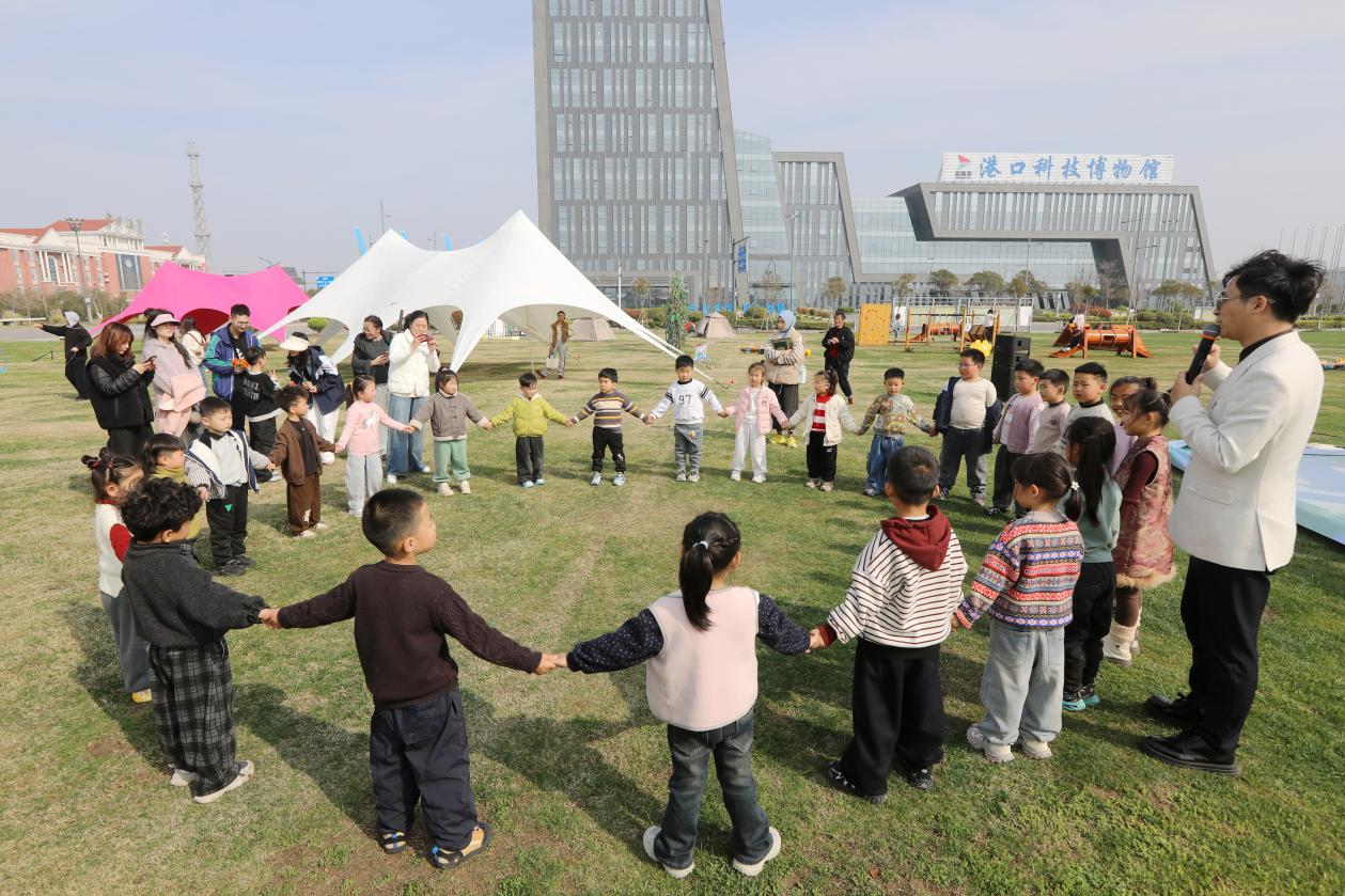 走进活动现场,春意扑面而来。主舞台K歌区传来阵阵欢唱,亲子家庭轮番登台参与春日K歌比赛,歌声与笑声交织成春日最动听的旋律。草坪之上,孩子们手握画笔,在空白风筝上描绘心中的春天,随后牵着丝线在蓝天白云间放飞。海风拂过,纸鸢与海浪遥遥相望,港口的春日图景在这一刻生动定格。“孩子平时在城市里很少有机会这样放风筝,今天在大丰港区跑一跑,感觉特别不一样。”一位来自盐城市区的家长说。