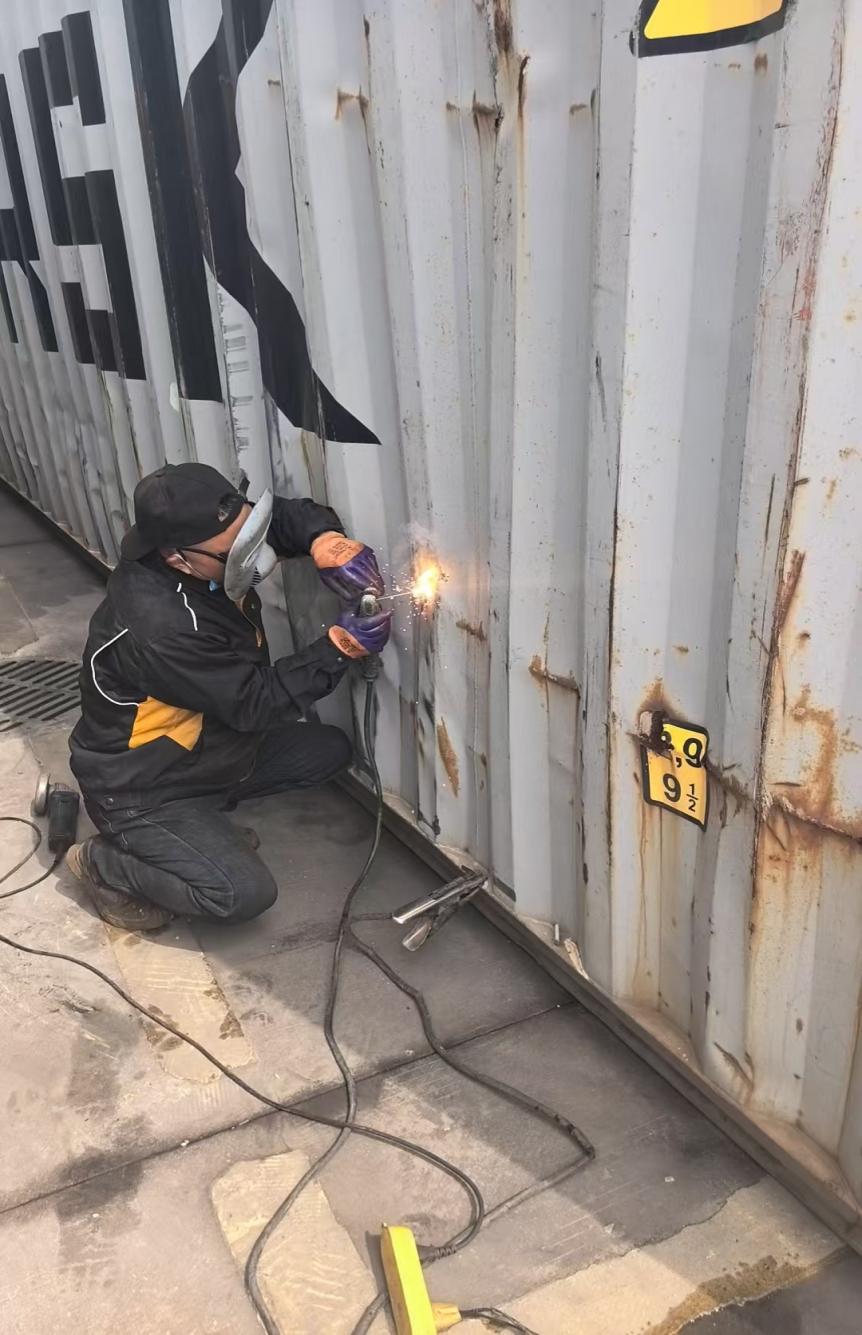为切实破解客户维修痛点、探索服务延伸新路径,建湖铁路分公司积极筹备、有序推进,尝试推出集装箱现场维修服务。目前,公司已配备基础专业检修设备,组建了经验丰富的技术团队,严格遵循铁路与海运集装箱检修标准,采用“就地维修、随到随修”模式,可提供集装箱的预检、清洗、焊接、钣金等基础维修服务。这种就地检修、即时响应的模式,有效缩短了维修周期,切实解决了集装箱“摆渡修”带来的运力损耗与时间延误难题,为客户高效周转货物提供了有力支撑。