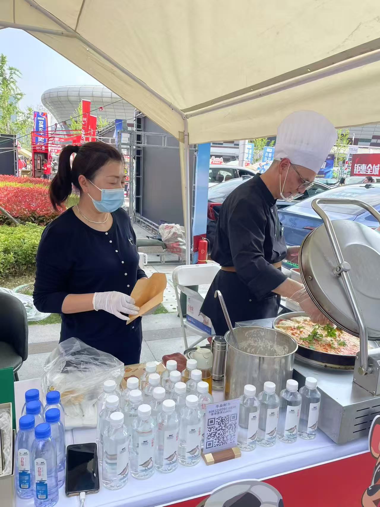 在奥体中心主题市集内,八大展区依次排开,特色商品琳琅满目。莎士比亚电子商务公司带来的跨境全球购专区人气颇高,展位上汇集了日韩美妆、健康饮品、澳洲保健品及网红零食等跨境优选好物,涵盖美妆护肤、营养保健、休闲食品等多个热门品类,吸引不少球迷驻足咨询与选购。工作人员现场耐心讲解商品特点与使用场景,不少球迷拿起心仪商品仔细端详,现场互动氛围持续升温。港泊特色美食摊位人气高涨,以港航烟火气点亮赛场周边,助力海洋文旅与文体消费深度融合。现场大厨现煎现制,鸡蛋饼香气四溢,金黄酥脆的饼皮搭配鲜香馅料,刚出锅的热乎美食,瞬间驱散球迷观赛的疲惫,为热血赛场注入一份来自盐城港的温暖补给。工作人员以高标准服务有序分装、贴心递餐,用地道烟火味传递港泊品牌的温度,让美食成为连接赛场激情与港航文化的暖心纽带,为“文商体旅”融合添上一抹鲜亮底色。