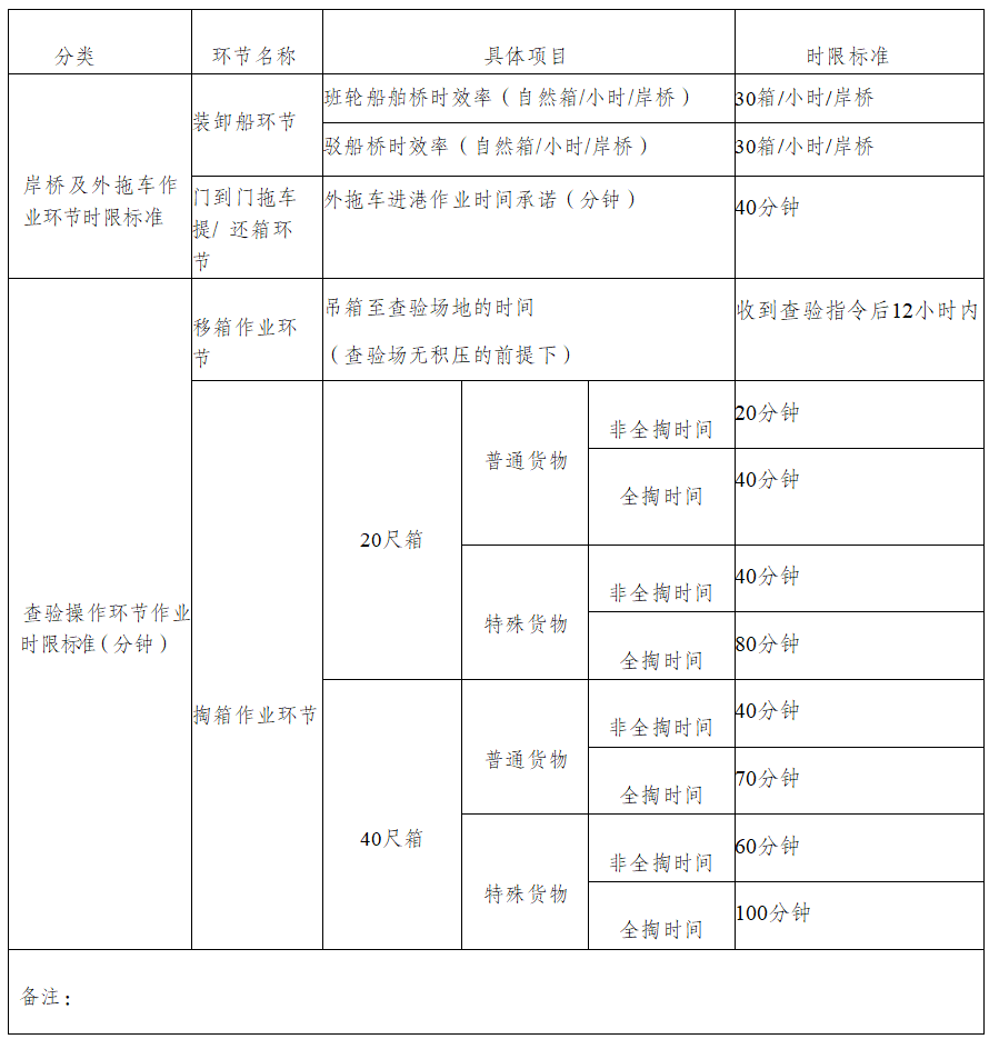 江苏盐城港上港国际港务有限公司作业时限标准