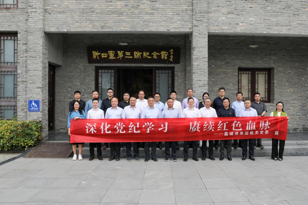 5月21日,盐城港集团机关党委组织开展“深化党纪学习 赓续红色血脉”主题红色实境教育活动。集团党委书记周正雄,市委派驻集团党建工作指导员王健,集团领导班子,集团机关党委各支部代表,办公室、党群工作部相关人员等参加。