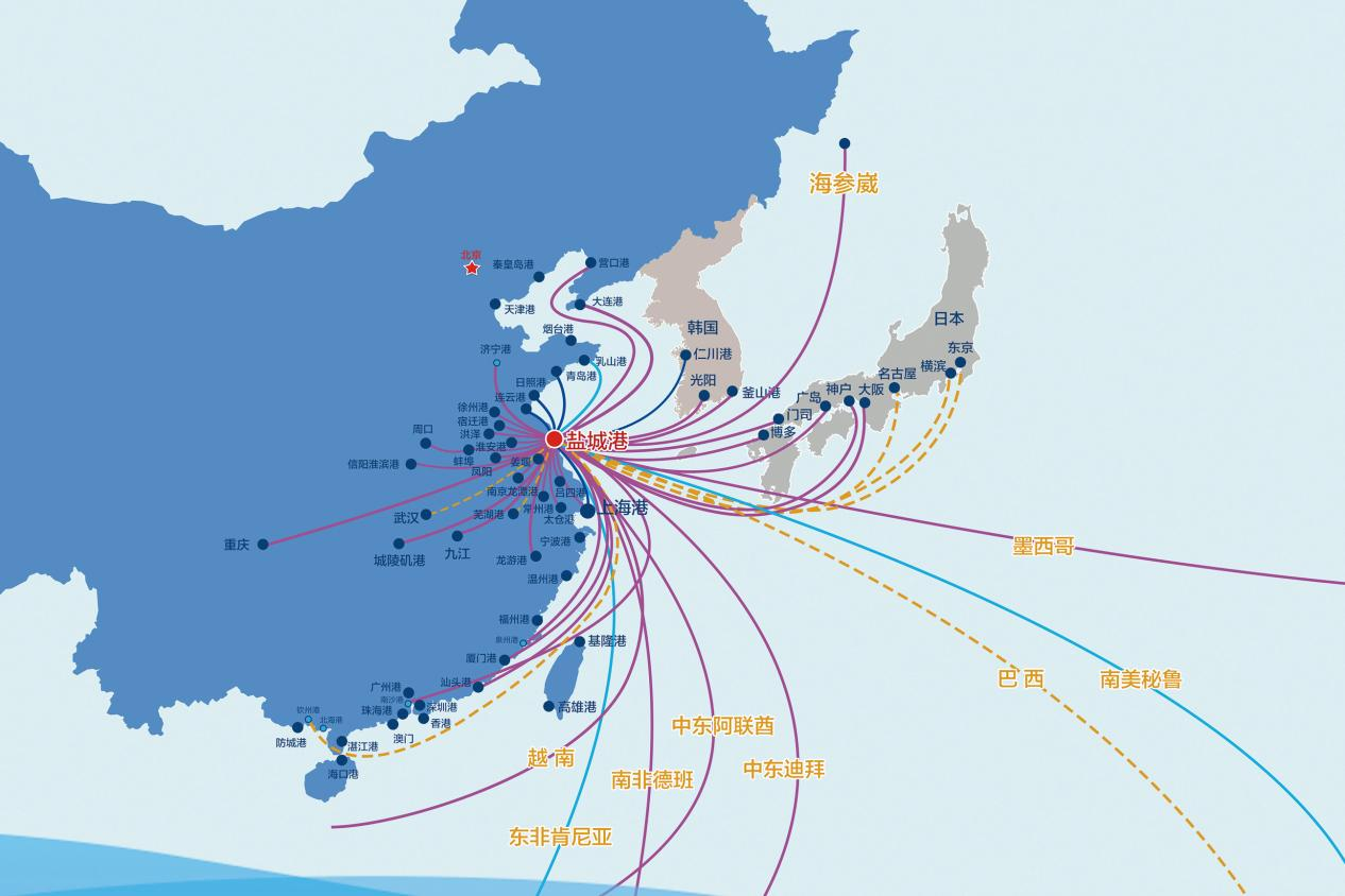 盐城港集团成立之初,便将航线开辟作为重要任务,以“做优内河、主攻近海、加密近洋、探索远洋”为航线开辟思路,全力构建全方位、多层次、宽领域的航线网络。五年来,在集团不懈努力下,盐城港航线版图不断拓展,从寥寥数条到纵横四海,实现了跨越式发展。