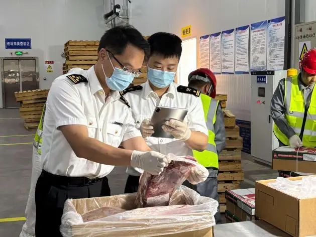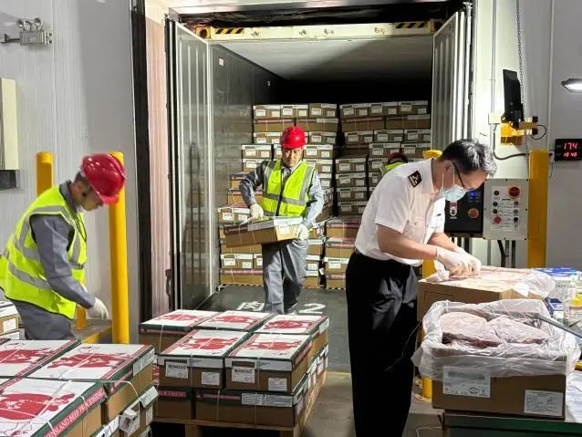保税物流中心与速味达公司联合构建了“原产地直采—全程冷链—保税仓储”的一体化供应链模式,充分运用区内先进智能温控设备,对温度进行精准调控,且温度稳定性极高,波动幅度控制在极小范围内,确保牛肉从入库到存储全程保持新鲜状态,最大程度保留其优良品质。同时为助力澳洲牛肉快速入区,中心充分发挥自身在报关、报检等环节的资源整合能力,为该批货物开通了专属“便捷通道”。通过与海关部门的高效联动,内部流程的优化升级,大幅缩短货物从到港到入库的时间,实现澳洲牛肉的快速流转。