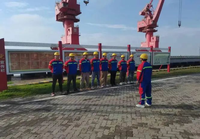 秋风送爽,射阳港区码头作业忙。一班班组有序的开展班前会,班组长强调“码头作业安全第一,任何人、物必须在保障安全的前提下开展工作,团队之前一定要密切配合......”岸边悠长的汽笛声奏响了“奋战四季度”的奋进集结号,班组分工明确,各司其职,操控起重机的抓斗开合、指挥运输车辆到达指定地点、把控作业全流程安全,高效装卸作业,提升客户满意度、提高港区作业量。