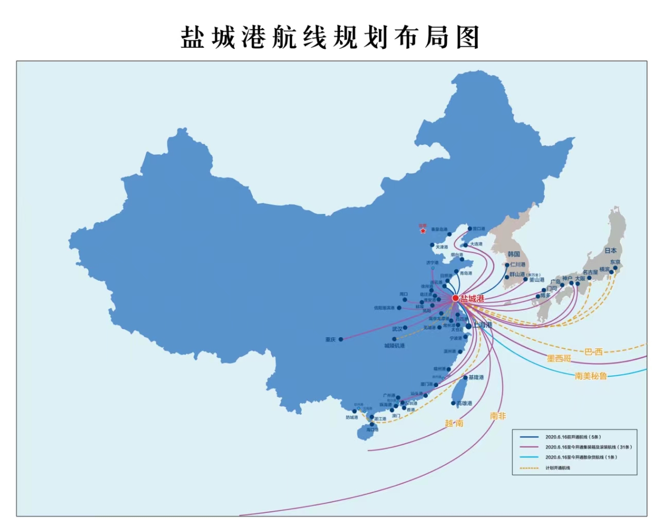 围绕现代物流产业,推进集成式物流管理,主要从事集装箱进出口货物的揽货、报关报检、装卸、运输、订舱、仓储等业务。2022年实现集装箱吞吐量55.1万标箱,同比增长37.75%。2023年,完成集装箱吞吐量66.1万标箱,同比增长20%。现有国际国内航线43条,包括汽车滚装航线4条,至南美杂货班轮1条,集装箱班轮航线37条,包括对韩、日、东南亚航近洋线4条,对沪内支航线2条(每周六班),至青岛、日照、连云港、营口、太仓、吕四的沿海内贸航线6条,至河南周口、蚌埠、凤阳、重庆、宿迁、上海、淮安、徐州、宿迁、武汉、太仓、常州、城陵矶内河以及至市域阜宁、步凤、亭湖、宝联、建湖的内河航线26条,逐步构建“海上联结南北、内陆贯通东西、向海融入中日韩”的双循环新格局。