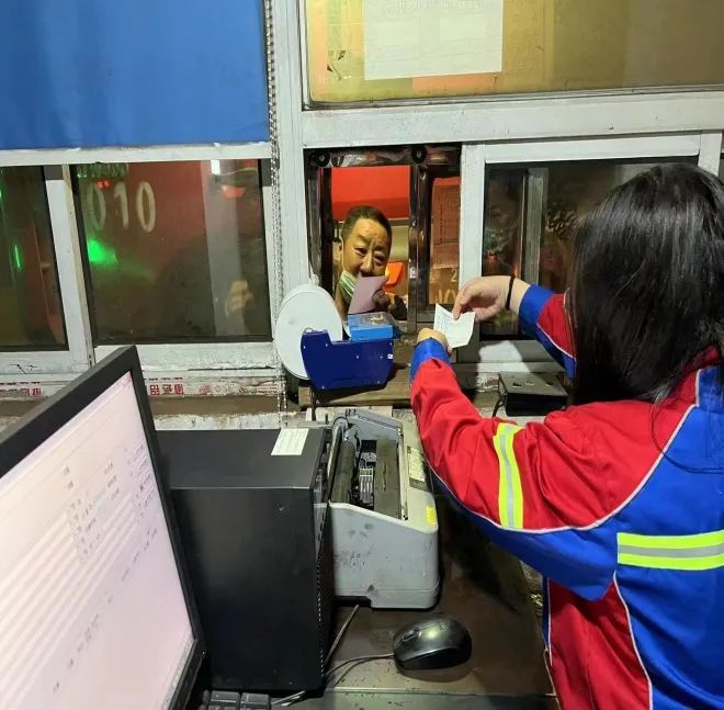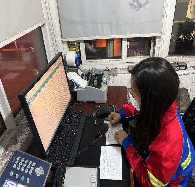 深夜的磅房里没有一丝倦意,来往过磅的车辆一辆接着一辆,确认车号、填写小票、记录数据、协调客户,这一系列工作就像糖葫芦一样串在一起,她们事无巨细、精益求精,从容应对,游刃有余。