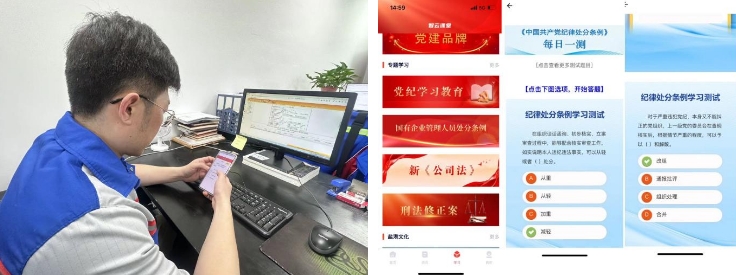 “这题选A对吧?关于《中国共产党纪律处分条例》的这条规定。”“没错,但得注意细节,不能马虎。”小徐边答边点头。随着红色盐港APP的闪亮登场,港湾建设集团的党员们迅速响应,纷纷登录平台,开启了沉浸式线上学习之旅。他们深入研读《中国共产党纪律处分条例》,通过做题巩固知识,强化纪律意识,确保在日常工作中严于律己,以身作则,为企业的健康发展筑牢坚实的思想防线。