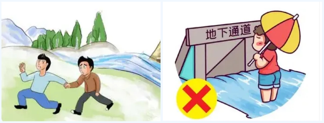 (6)如已被卷入洪水中,一定要尽可能抓住固定的或能漂浮的东西,寻找机会逃生。