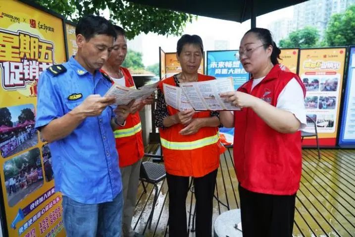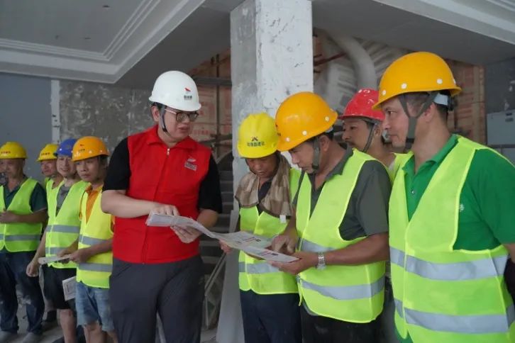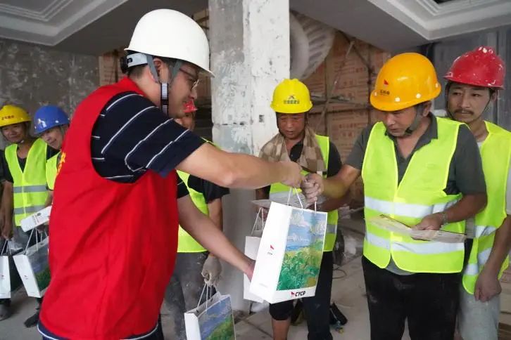暖心驿站内欢声笑语,气氛热烈。来自宝龙社区的代表、志愿者与港湾建设集团的党员志愿者们齐聚一堂,一幕幕温馨的画面不断上演。他们不仅为劳动者们分发防暑降温日用品,还耐心讲解安全小常识,确保每一位劳动者都能感受到来自社区和企业的关怀。