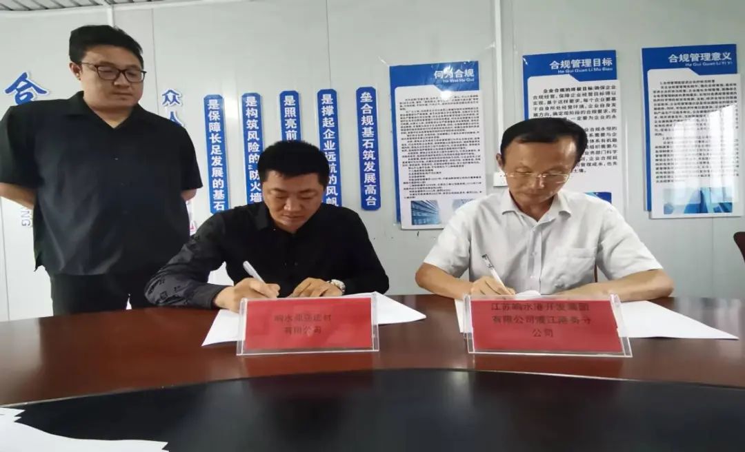 响水港区灌江港务分公司2名挂职人员在做好防范台风工作安全的基础上,积极参与码头揽货工作,在大家的共同努力下,灌江港务分公司与响水鼎强建材公司成功签订年装卸量30万吨的货物装卸合同,为完成全年目标任务增添了强劲动力。