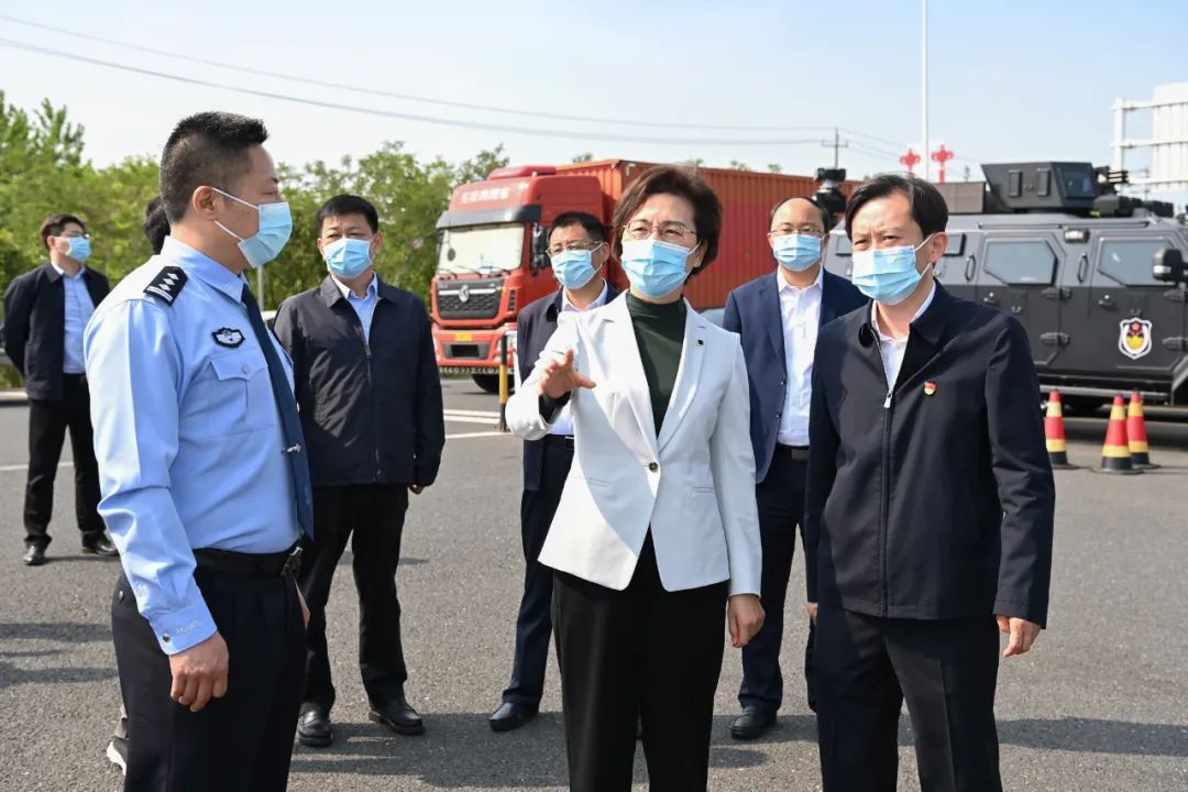 在阜溧高速阜宁出口,一辆辆大货车按照疫情防控要求快速有序通过。徐缨来到查验点详细询问驾乘人员查验登记流程和核酸检测措施,检查路网保通保畅情况。她指出,要全面优化各项防控措施,科学有序做好交通疏导,为司乘人员提供贴心暖心服务,坚决防止和避免出现大面积拥堵和长时间等候,全力保障生产生活重要物资运输通畅。