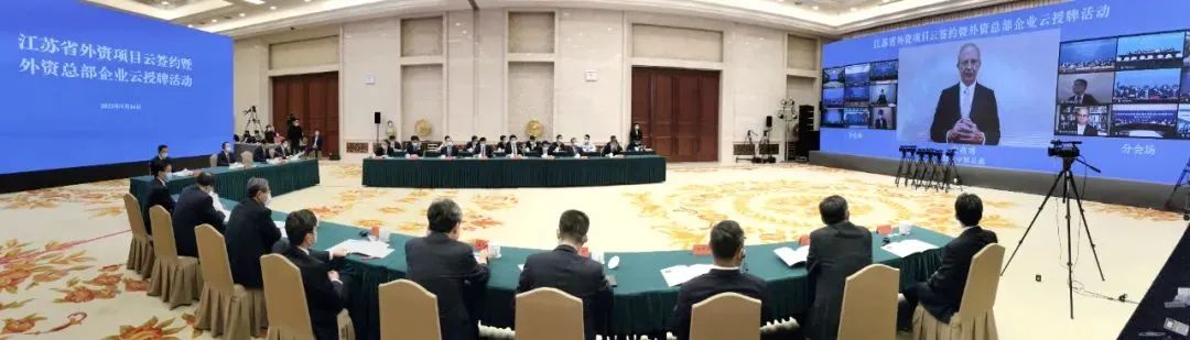 吴政隆代表省委、省政府向海内外新老朋友致以亲切问候,向签约各方表示祝贺。他说,很高兴与大家相聚“云端”,共同见证我省外资项目“云签约”和外资总部企业“云授牌”。人类命运休戚与共,携手合作才有未来。尽管疫情暂时阻隔了我们的相聚,但阻断不了我们携手共进的信心,阻挡不了我们合作共赢的步伐。