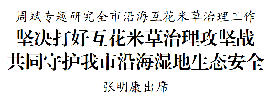 会上,市自然资源和规划局通报全市互花米草治理工作情况,沿海各县(市、区)和国家级自然保护区作交流发言。