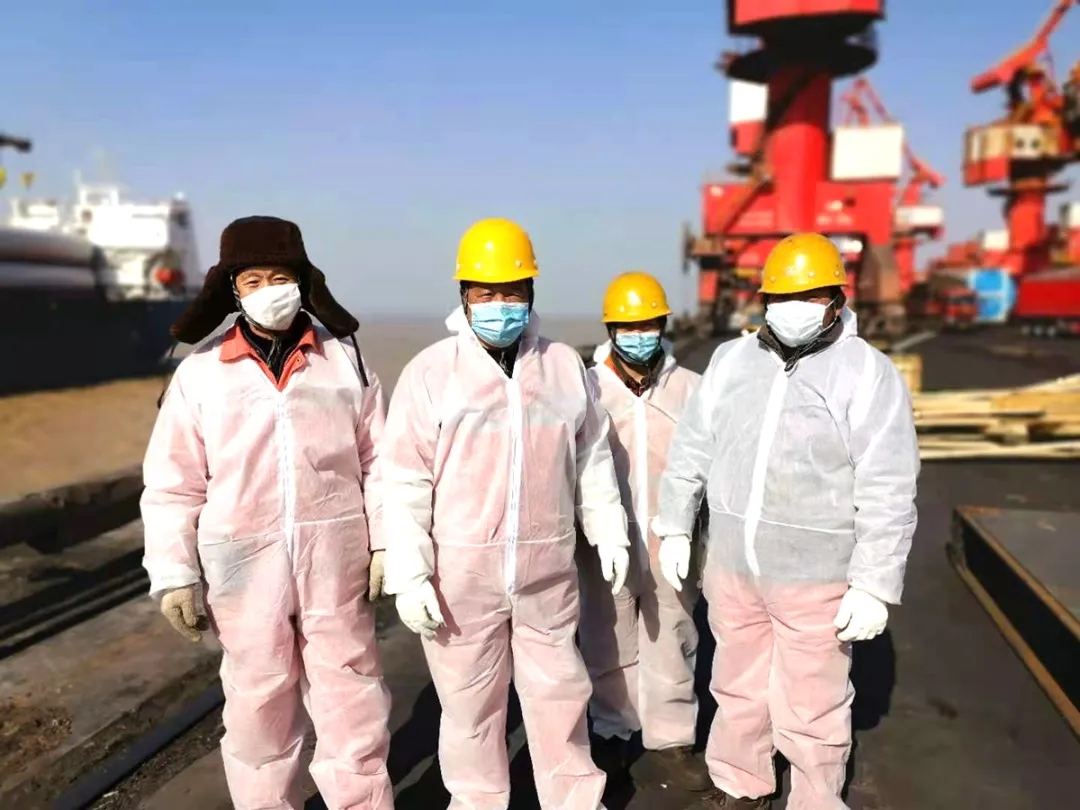 积极配合相关部门,对生产一线所有人员进行核酸检测,做到应检必检。对道口、码头、办公区域、食堂等重点区域进行消毒、通风换气。同时加强内部防控,提升全体人员自我防护意识,做好全员体温监测和排查登记,根据疫情防控需要科学合理安排作业生产,码头作业人员一律佩戴口罩、护目镜、穿防护服上岗。